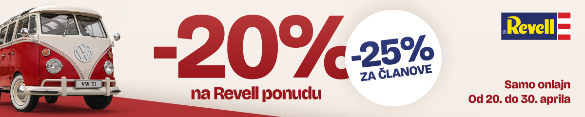 Od 20. do 30. aprila ostvarite 20% popusta na izdvojene Revell artikle, dok članove Dexyco kluba očekuje posebna pogodnost — 25% popusta.