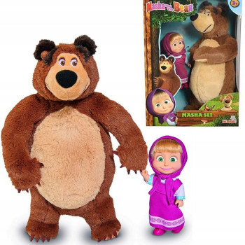 Set uključuje plišanog medu veličine 40cm i Mašu veličine 23cm.