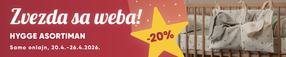 Uz Hygge proizvode, bebine svakodnevne rutine postaju nežnije, praktičnije i udobnije — od sitne opreme i pribora do meke posteljine za najmlađe. Od 20. do 26. aprila ostvarite 20% popusta na izdvojene Hygge proizvode online na www.dexy.co.rs.
